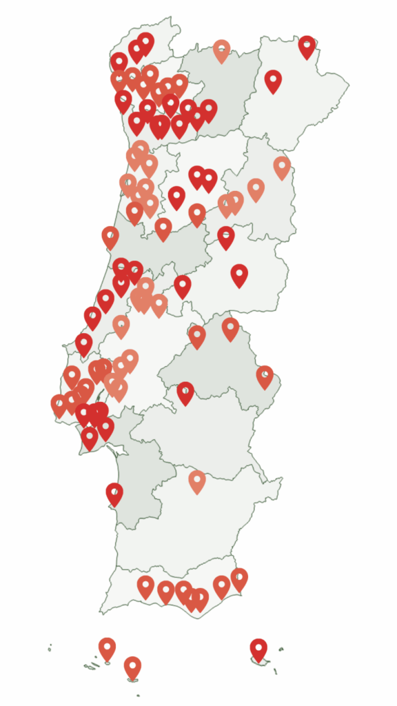 Cantanhede, Coimbra, Figueira da Foz, Mealhada e Oliveira do Hospital.